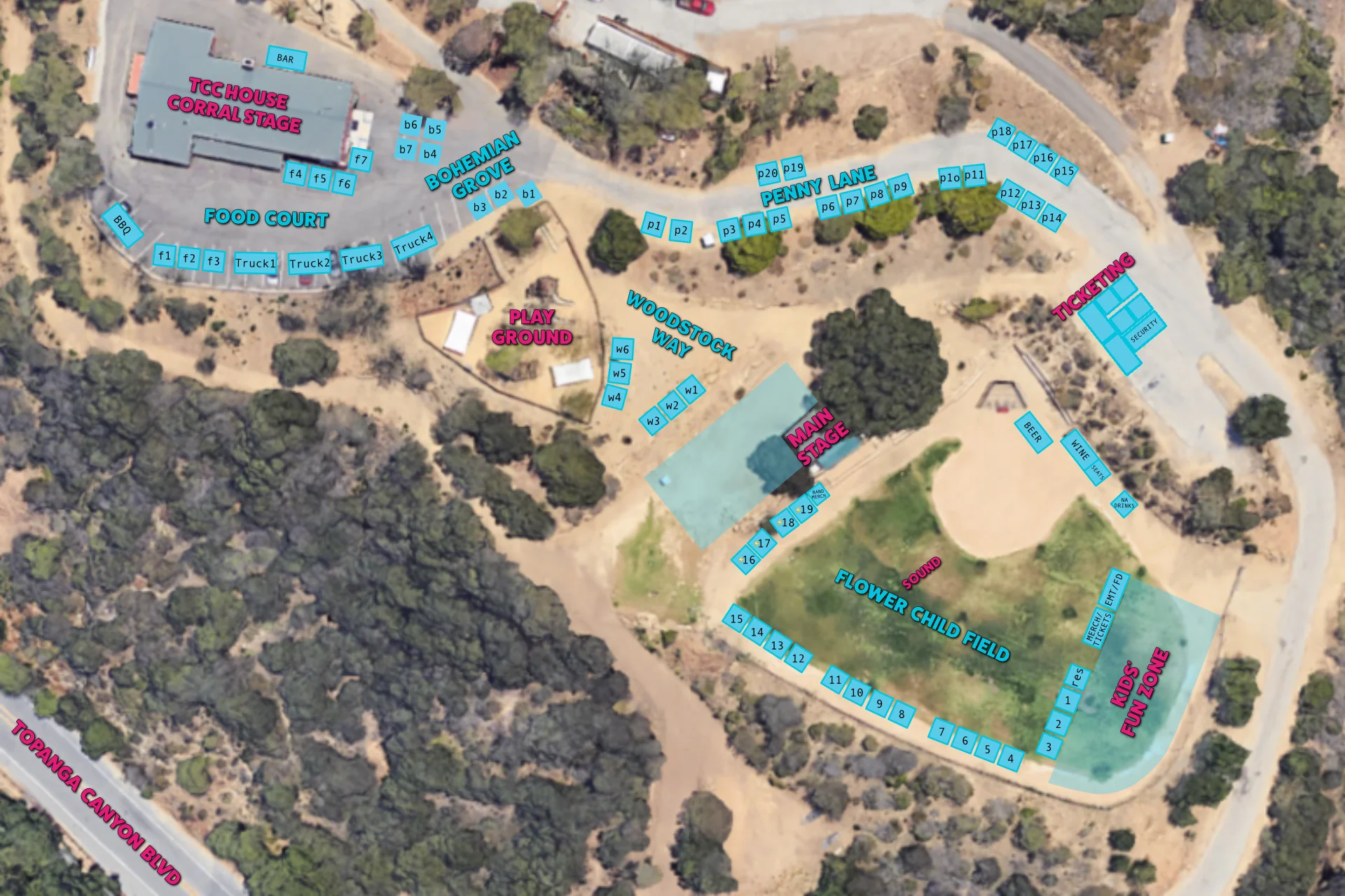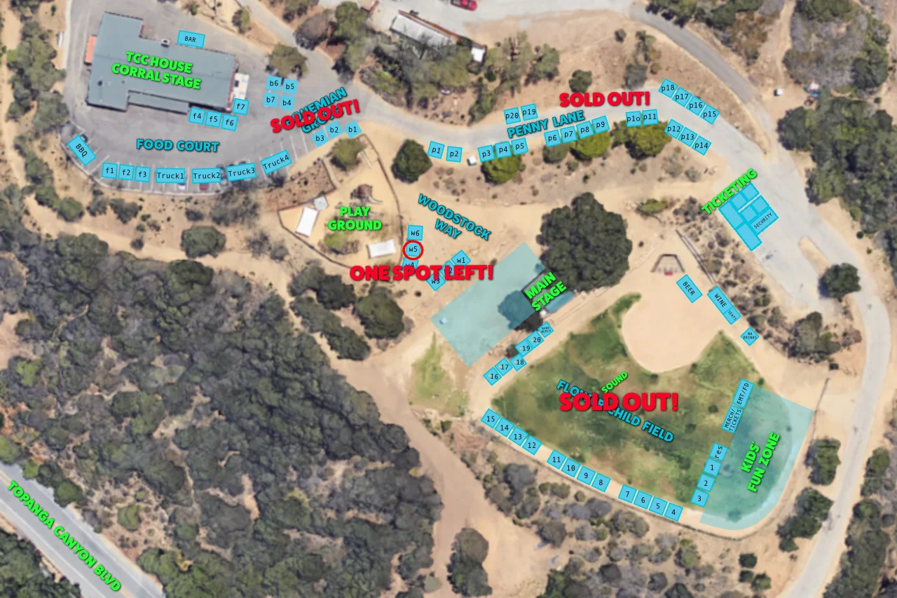 These booths are on TCC ballfield where the main stage is located, and they are available with or without power.